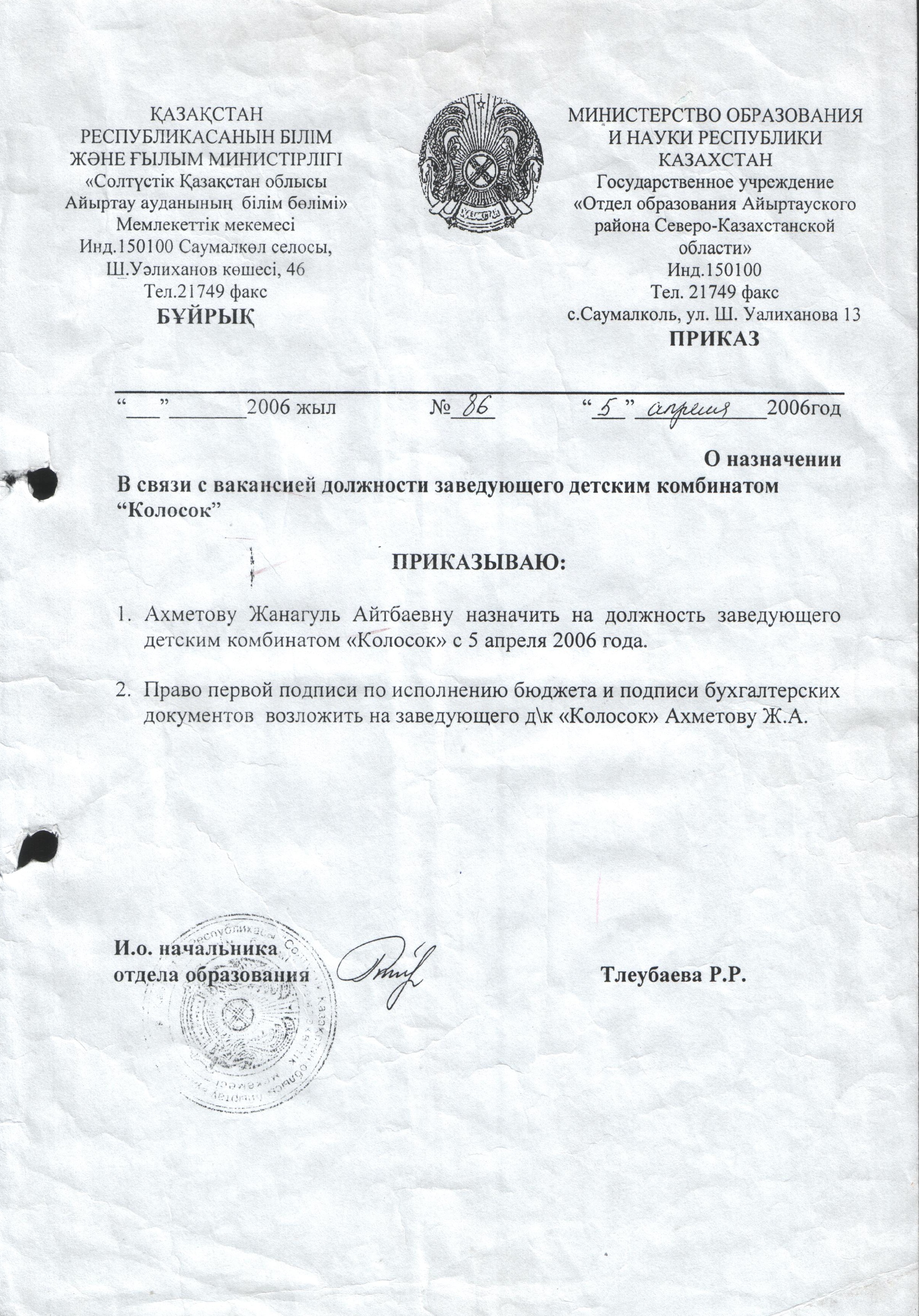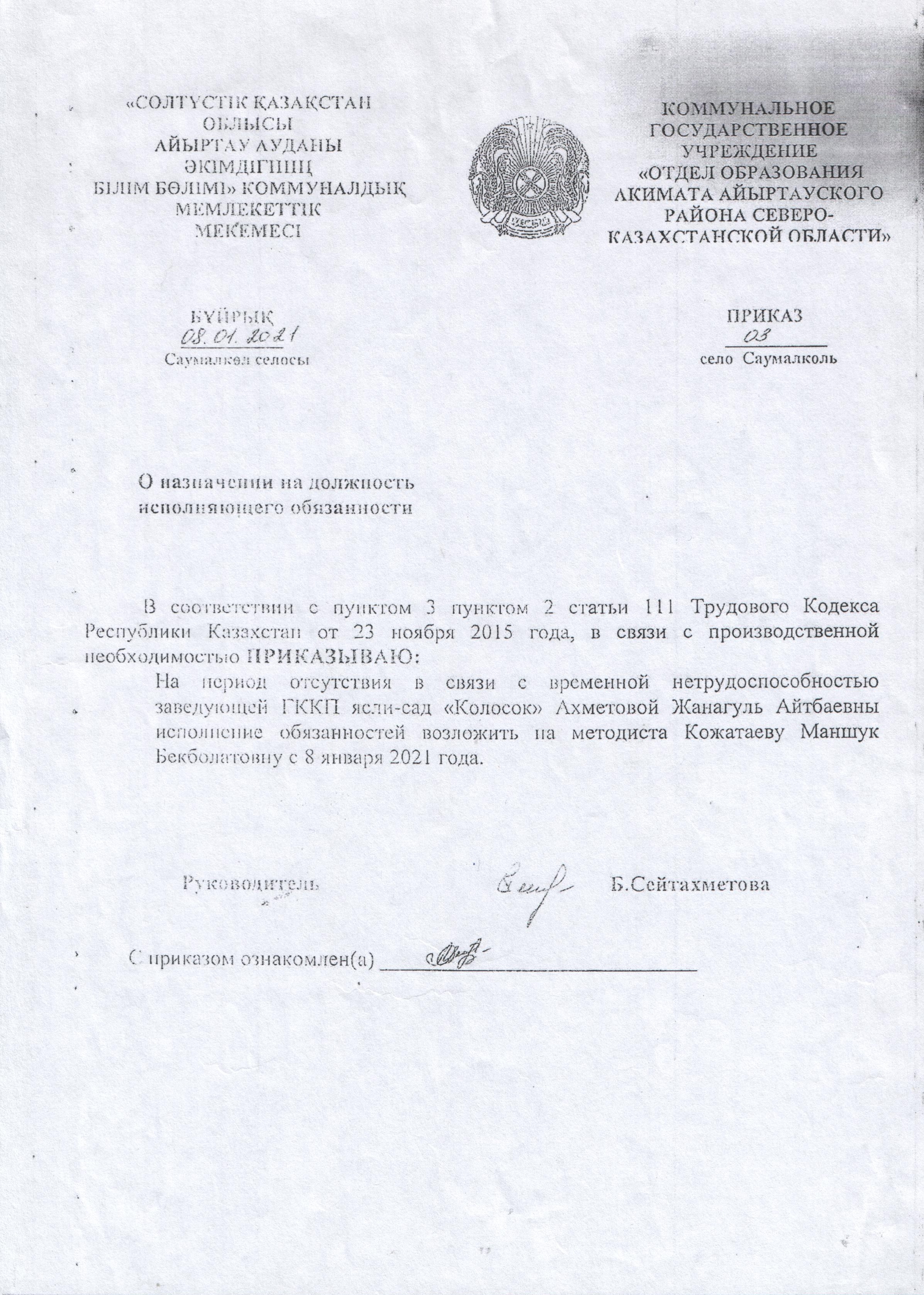 Приказ на должность исполняющего обязанности